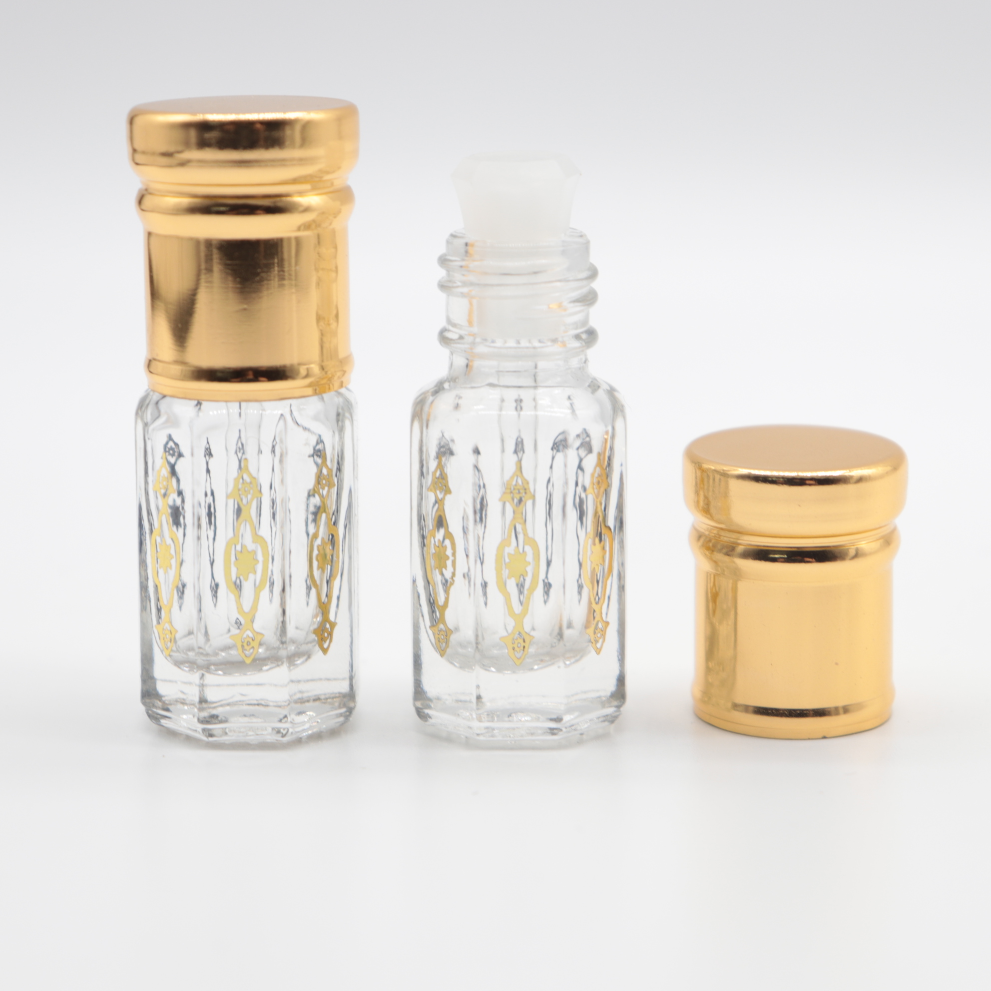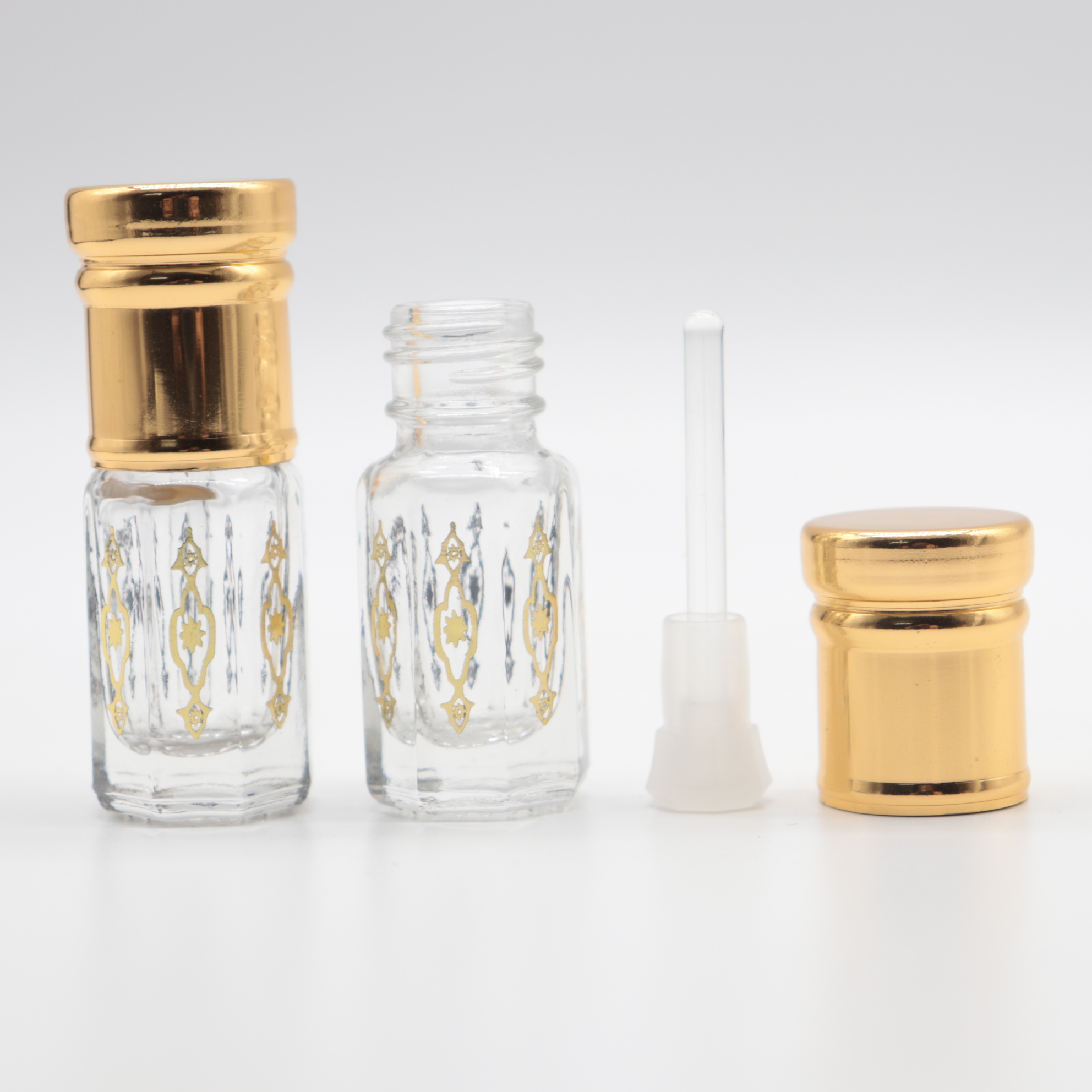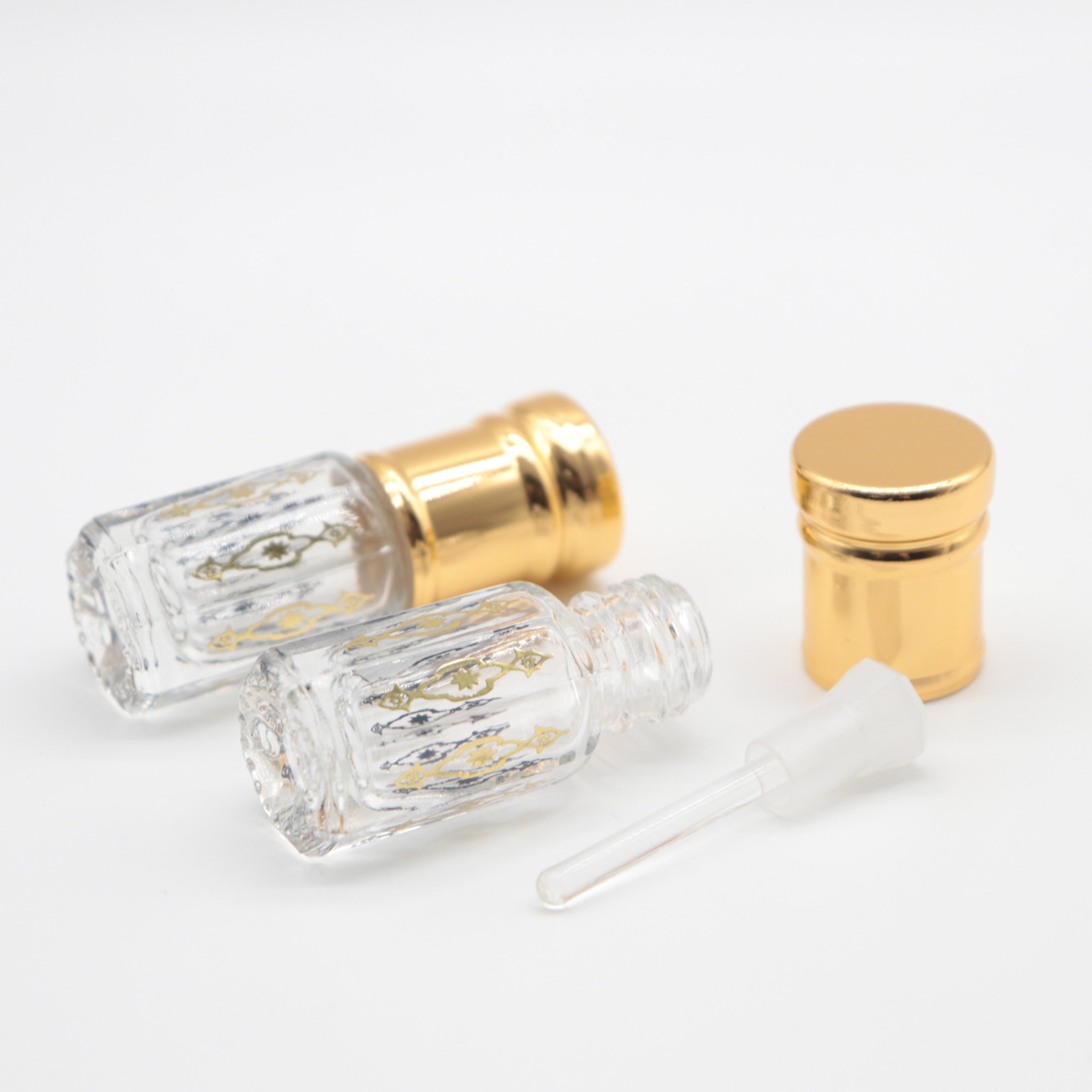Glass Bottle 3ml 6ml 12ml Clear Octagonal Essential Oil glass bottle with glass stick for oud oil